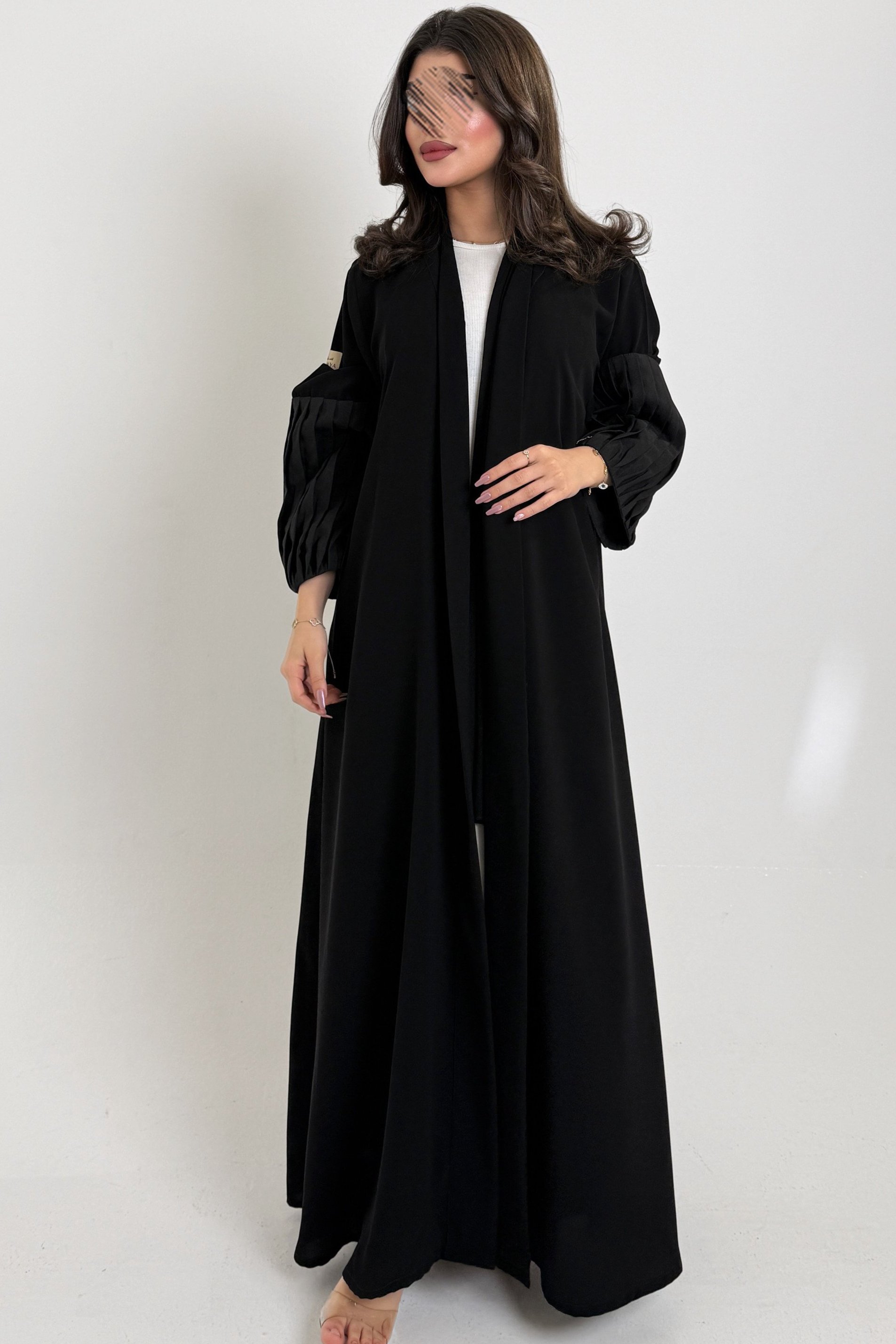 لون أسود الكريب يعكس فخامة هادئة وأناقة عميقة، حيث يمنح القماش مظهرًا متماسكًا وانسيابية ناعمة تتناغم مع حركة العباية. هذا الأسود الراقي يبرز تفاصيل التصميم بدقة، ويضفي على الإطلالة عمقًا بصريًا ودفءً ملكيًا خفيًا دون أي بريق مبالغ فيه، ليجسد كلاسيكية راقية وعصرية في الوقت.